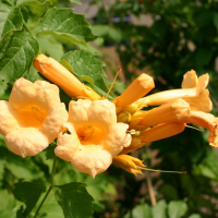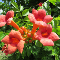Уход: В жаркие дни и в период цветения кампсис нуждается в обильном поливе, но может выдерживать небольшую засуху. Важно не допускать регулярного застоя воды в почве. На плодородной почве лиана может расти вовсе без удобрений. При недостатке питательных веществ рекомендовано использовать азотно-фосфорные комплексы. Они сделают цветение более обильным и продолжительным.
