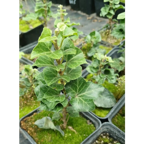 Вертикально растущий до высоты 60-90 см вечнозеленый кустарник с темно-зелеными, глянцевыми, мелкими трехлопастными листьями, в форме сердца, расположенными противоположно и равномерно вдоль почти вертикальных побегов. В холодное время года листья окрашиваются в более темные тона. Цветы зеленовато-белые, незаметные. Растение декоративное круглый год. Растет быстро, но достаточно компактно и не так агрессивно как другие вьющиеся сорта.