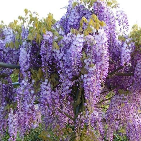 Глициния, или вистерия (Wisteria) - род листопадных вьющихся кустарников-лиан (высотой до 20 м) семейства бобовых родом из Северной Америки и Восточной Азии, включающий 9 видов. Длинные очередные листья глицинии непарноперистые. Нарядные, свисающие кисти соцветий (20-50 см) глицинии на вьющихся стеблях чрезвычайно декоративны. Выведены эффектные сорта вистерии с различной окраской ароматных цветков: белых, розовых, различных оттенков синего и фиолетового (от голубых до пурпурных). Глицинии морозостоойки (до -28 °С). Лучше всего глицинии цветут на теплых, солнечных, защищенных от ветра местах. Поэтому глициния подходит для выращивания в условиях климата Украины.