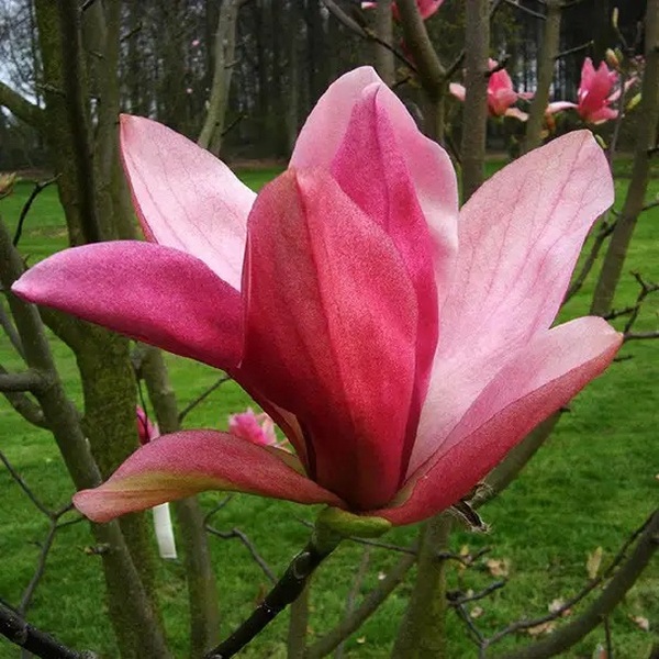 Очень крупные цветки до 30 см в диаметре, выделяющие сладкий, слегка цитрусовый аромат. Лепестки заштрихованы несколькими оттенками розового. Обильно цветет поздней весной, поэтому менее подвержен весенним заморозкам. Сорт с довольно быстрым ростом и красивыми цветками. Большие овальные темно-зеленые листья. Достигает высоты около 5 м через 10 лет. Предпочитает солнечные, защищенные места и перегной. Влажная, хорошо дренированная и плодородная почва со слабокислой реакцией. Зимой следует защищать корневую систему укрытием.