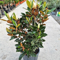Magnolia grandiflora Little Gem - компактный сорт магнолии вечнозеленой, с плотной узкоколоновидной кроной. Цветки диаметром 20 см с легким ароматом, появляются на кончиках твердых толстых стеблей с конца весны, цветут все лето и распускаются до последних теплых солнечных дней. Листья гладкие, кожистые, продолговато-эллиптической формы, длиной 12 см, блестящие темно-зеленые сверху и коричнево-войлочные снизу. Литтл Джем произрастает до 2-3 метров высотой. Любит солнечные и полутенистые места. Почва должна быть богата органическими веществами, влажной, от нейтрального до кислого, хорошо дренированного.