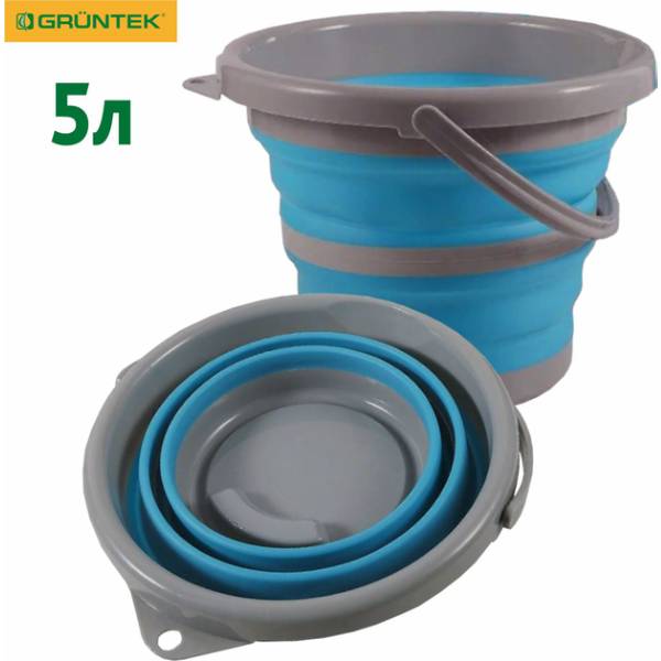 Складные ведра GRUNTEK с силиконовым покрытием и плотным пластиковым каркасом прошли тестирование на стойкость и многоразовую сборку.