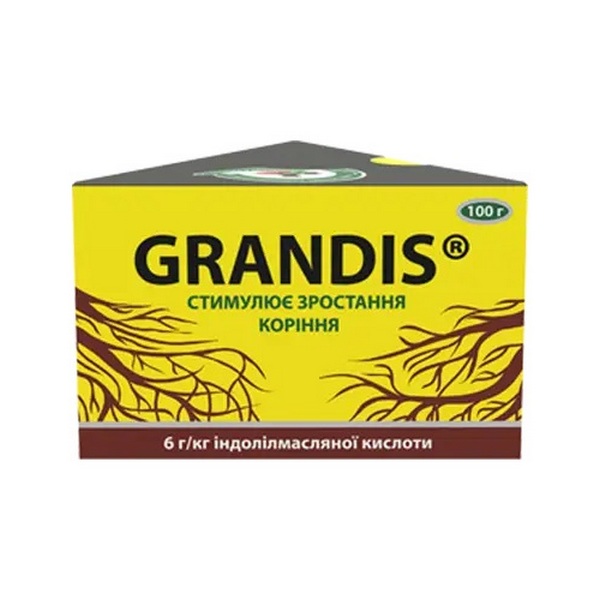 Grandis – препарат, предназначенный для корнеобразования у растений. Созданный на основе индолил-3-масляной кислоты – биологического вещества, стимулирующего формирование корневой ткани. Используется Grandis для припудривания свежих срезов у черенков плодовых, ягодных, цветочных и овощных культур, полива семян.