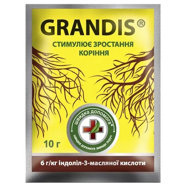 Grandis – препарат, предназначенный для корнеобразования у растений. Созданный на основе индолил-3-масляной кислоты – биологического вещества, стимулирующего формирование корневой ткани. Используется Grandis для припудривания свежих срезов у черенков плодовых, ягодных, цветочных и овощных культур, полива семян.