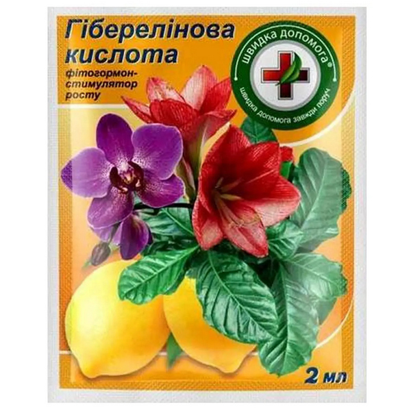 Гиббереллиновая кислота является фитогормоном, который играет важную роль в регуляции роста и развития растений. Этот гормон относится к классу терпеноидов и проявляет свои стимулирующие свойства на молекулярном уровне. Применение препарата может приводить к увеличению урожайности, улучшению качества плодов и овощей, ускорению роста растений и повышению их стрессоустойчивости. Замачивание семян перед посадкой 2 мл на 0,5 л воды, опрыскивание комнатных, овощных, плодовых, рассады 2 мл на 0,5-1 л воды.