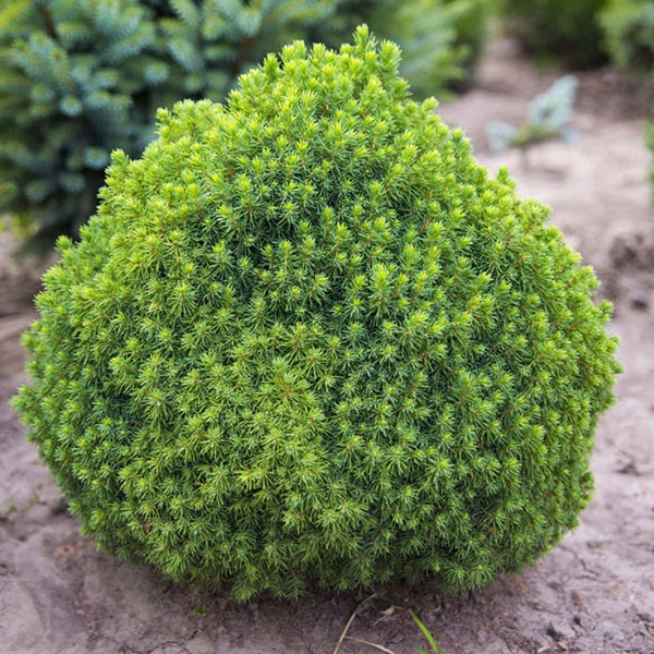 Ель канадская Альберта Глоб (Picea glauca Alberta Globe) - очень густой плотный хвойный кустарник, подушковидной формы, высотой 0,5-0,8м и диаметром до 1м. Медленно растущий, годовой прирост 2-3см. В 10 лет диаметр кроны 0,3-0,4м. Молодые побеги короткие, тонкие, светло-коричневые, расположены густо в радиальном порядке. Хвоя короткая, мягкая, светло-зеленая, тонкая, игольчатая, радиальная, часто расположенная, очень декоративная длиной 6-9мм. Рекомендуется для посадки на почвах, богатых питательными веществами, увлажненных и водопроницаемых, слегка кислых, в солнечном месте. Плохо переносит переувлажнение и уплотнение почвы. Подойдет для выращивания в контейнерах.