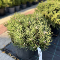 Сосна черная Нана (Pinus nigra Nana) - декоративный сорт сосны черной. Карликовая широкопирамидальная или шаровидная форма. В 30 лет достигает 3 метра высоты. Очень темный хвойный кустарник, практически черный. Растет очень медленно, ежегодный прирост 5 см.