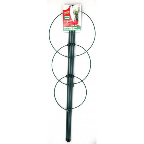 Опора Elsa IFR выполнена из прочного металла. Она не гнется под весом растения, и выдерживает большие нагрузки. Метал покрашен в зеленый цвет, что делает опору практически незаметной на фоне растений. Устройство изготовлено без использования вредных красителей и химикатов. Опора не загрязнит грунт, и не нанесет вреда растениям. Опора оснащена тремя кольцами разного диаметра. Они делают конструкцию более устойчивой, и не позволяют растению упасть. Подставка очень легко устанавливается. Она многоразовая, а потому вы всегда сможете переставить ее в случае необходимости к другим цветам.