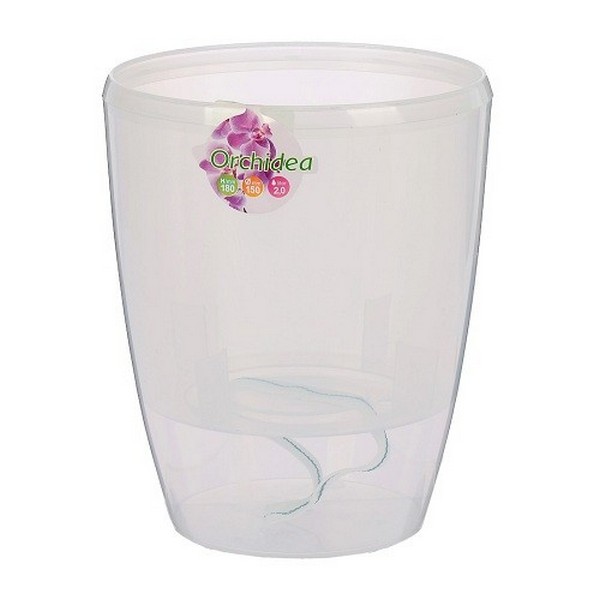 Горшок для орхидей с системой контроля уровня воды. Состоит из внешнего декоративного вазона с прозрачным отверстием внизу для контроля уровня воды, и внутреннего горшка-вкладыша с дренажными отверстиями, а так же фитилем для увлажнения корней.