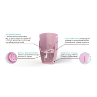 Горшок для орхидей с системой контроля уровня воды. Состоит из внешнего декоративного вазона с прозрачным отверстием внизу для контроля уровня воды, и внутреннего горшка-вкладыша с дренажными отверстиями, а так же фитилем для увлажнения корней.