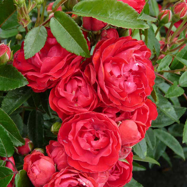 Высота куста, как правило, составляет около 50-70 см, ширина около 60-75 см. Цветки мелкие, около 4-5 см в диаметре, полумахровые, около 35 лепестков, практически правильной шарообразной формы, собраны в крупные соцветия. Цветение обильное, повторное, аромат слабый. Отмечается отличная морозостойкость. Сорт идеален для переднего плана бордюра или как контейнерная культура, так же может выращиваться в качестве почвопокровного растения.