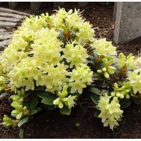 Rhododendron hanceanum Princess Anne – отличный образец вечнозеленых сортовых гибридов, низкорослый и обильно цветущий.