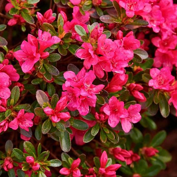 Рододендрон Кляйнер Принц – компактный кустарник, популярный благодаря цветущим коврам, которые он образует. Рост медленный, максимальная высота – 30-50 см. Нежные, воронкообразные цветки появляются в большом количестве, по 2-3 на бутон, довольно рано, с конца апреля до середины мая, яркого карминно-розового цвета. 5-лопастные радиальные цветки диаметром около 3 см кажутся простыми, но элегантными благодаря четко очерченным и закругленным краям лепестков. Листья сравнительно небольшие, темно-зеленые, слегка блестящие. Зимостойкость до -20 °C.