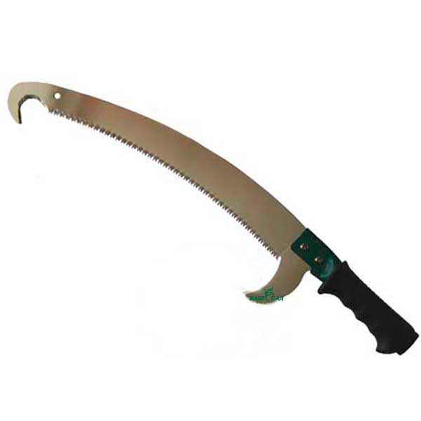 Пила садовая выгнутая трёхрядная, длина лезвия 48 см. Пила предназначена для легкого среза свежей и сухой древесины. Благодаря хорошей форме рукоятки рука не соскальзывает при движении на себя. Закаленные, идеально заточенные зубья облегчают работу. Изготовлено из высококачественной стали. Пилу можно крепить к телескопической штанге и производить спил верхушек деревьев. Верхнее дополнительное лезвие облегчает спиливание труднодоступных веток, нижнее дополнительное лезвие помогает при спиливании толстых веток.