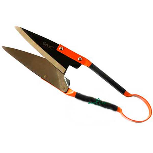 Садовые ножницы, прообразом которых являются ножницы для стрижки овец, незаменимы при выполнении филигранных работ, при создании скульптурных композиций из самшита и бюричины. Для скоростных работ они, разумеется, не годятся. Рекомендации к использованию: хранить ножницы в сухом месте и периодически смазывать машинным маслом.