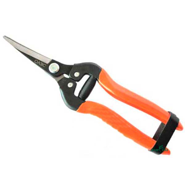 Секатор предназначен для работы с комнатными и садовыми растениями, а также для пасынкования овощных культур. Режущее полотно состоит из высшего качества стали, что гарантирует более долгосрочное использование режущего полотна без дополнительной заточки. Рукоятки металлические, обтянуты специальным прорезиненным материалом. За счёт широкого захвата между лезвиями – этим секатором можно перерезать также и травянистые стебли растений диаметром до 15 мм. Удлиненное полотно секатора и изгиб позволяет легко добраться до стебля.