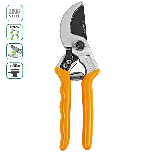 Секатор Gruntek Rabe создан для аккуратной обрезки зеленых веток, кустов, лозы, молодых побегов и цветов.