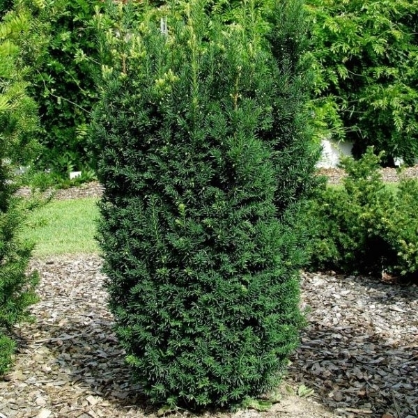 Тис средний - вечнозелёный густо-разветвлённый, компактный, широкопирамидальный крупный кустарник со строго вертикальными, ветвями, боковые побеги короткие, с возрастом вазоподобные и переплетённые друг с другом, очень живописные, медленнорастущий. С возрастом крона становится более рыхлой.
