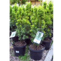 Тис (Тисс) ягодный Давид - вечнозелёное колоновидное дарево, побеги расположены вертикально. Молодые приросты с ярко-жёлтым окаймлением. Высота до 2 м., ширина до 0,7 м. Годовой прирост 7-10 см. Хвоя игольчатая, продолговатая, постепенно заострённая, 1-3 см. длиной.
