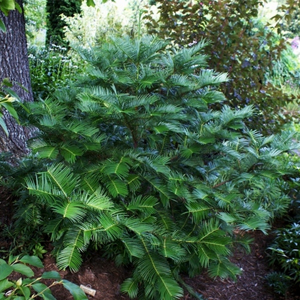 Именно этот вид благодаря своей холодостойкости чаще всего выращивается в ботанических садах Европы. Это невысокое дерево, достигающее 12 м, с красновато-коричневой корой. Листья длиной 5-8 см, шириной 4-5 мм, с постепенно заостряющейся верхушкой. На нижней стороне листьев расположены 2 широкие белые устьичные полоски. Отличительной чертой семейства являются шаровидные (головчатые) собрания микростробилов, которые расположены на коротких ножках на побегах последнего года.