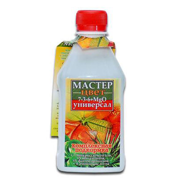 Назначение: Используется для подкормки и укрепления садовых и комнатных лиственно-декоративных и цветущих растений. Используется для усиления фотосинтетической активности. Помогает бороться с гнилью, задержками в развитии листьев, бутонов или корневой системы. Удобрение Мистер Цвет Универсальный не подходит для питания только пересаженного растения, а также подкормки в период активного роста.