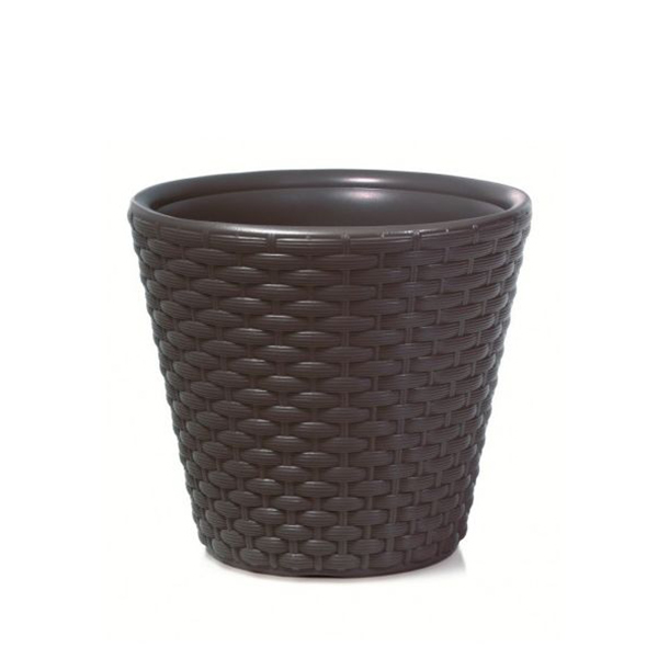 Материал: пластикЦвет: антрацитТекстура: плетёный ротангДиаметр: 34,8 смВысота: 32,4 смОбъем кашпо: 19 л