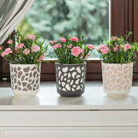 Вазон Дуэт - оригинальный двойной пластиковый вазон. Состоит из внутреннего основного вазона, в который высаживается растение и внешнего вазона кашпо с красивым узором, в который будет стекаться вода при поливе.