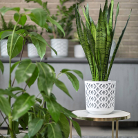 Горшки этой серии состоят из двух частей: цельной вставки и ажурного корпуса, которые вместе образуют уникальное трехмерное кашпо, создающее неповторимый декоративный эффект. Вставки доступны в пяти цветах, а корпуса в двух, что позволяет создавать различные комбинации и менять их в зависимости от потребностей и настроения. Горшок из серии Ацтек точно придаст вашему интерьеру эффектный и неповторимый вид.