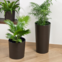 Вазон в процессе эксплуатации долго сохраняет первозданный вид, устойчив к перемене температуры. В комплект входит внутренняя вкладка, которая обеспечивает легкую пересадку растений, а также защищает пол от протекшей воды, что позволяет использовать кашпо без поддона. Это кашпо подойдет не только для внутридомового озеленения. Благодаря широкой линейке размеров, его можно ставить как в помещении, так и на улице, украшая сад, веранду или зону отдыха. А широкая палитра цветов позволяет удовлетворить самый изысканный вкус.