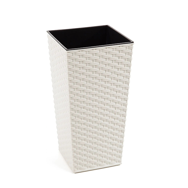 Стильное кашпо с вазоном-вкладкой, выполненное из качественного пластика в современном стиле. Такое кашпо легко моется, при долгой эксплуатации практически не теряет внешнего вида, устойчиво к различным температурным колебаниям. Благодаря удобной конструкции, позволяет наполнять землей только вазон-вкладку, являясь одновременно контейнером для стекающей воды.