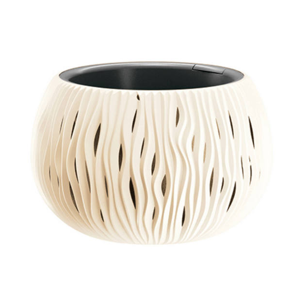 Вдохновением для создания круглых горшков для цветов из серии Sandy послужила традиционная керамика ручной работы. Декоративный вид горшков подчеркивается эффектными вертикальными зубцами. Благодаря классическому и чистому исполнению, он является эксклюзивным дополнением любого интерьера, а также садов и террас. Изготовлен из качественного, легко моющегося материала, устойчивого к морозам и неблагоприятным погодным условиям. Модель состоит из двух предметов: внутренняя емкость для посадки растений и внешняя декоративная.