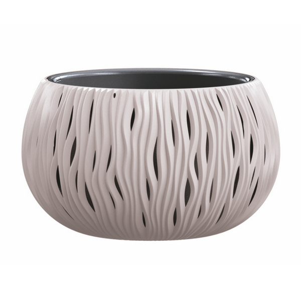 Вдохновением для создания круглых горшков для цветов из серии Sandy послужила традиционная керамика ручной работы. Декоративный вид горшков подчеркивается эффектными вертикальными зубцами. Благодаря классическому и чистому исполнению, он является эксклюзивным дополнением любого интерьера, а также садов и террас. Изготовлен из качественного, легко моющегося материала, устойчивого к морозам и неблагоприятным погодным условиям. Модель состоит из двух предметов: внутренняя емкость для посадки растений и внешняя декоративная.