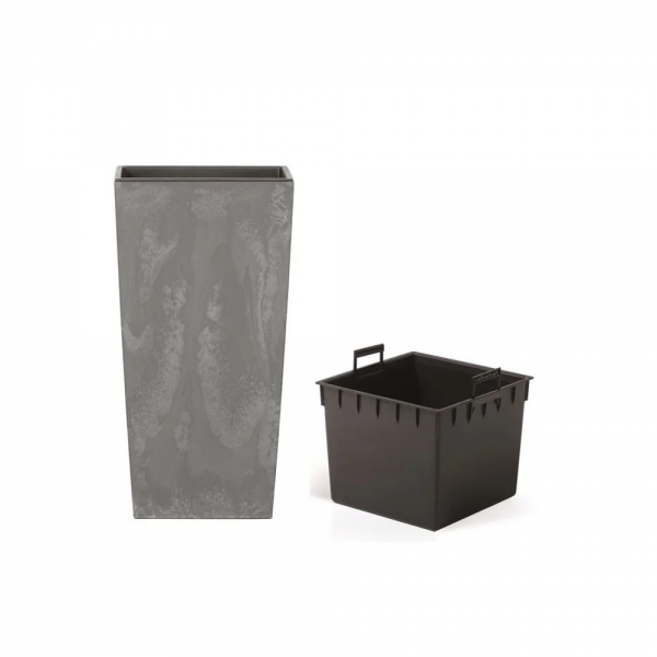 Urbi Square Beton Effect отличается современным дизайном и формой. Состоит из двух частей: наружной, имитирующей горшок из бетона и внутренней вставки, позволяющей уменьшить внутреннее пространство и использовать меньше грунта.