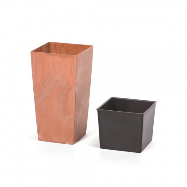 Urbi Square Beton Effect отличается современным дизайном и формой. Состоит из двух частей: наружной, имитирующей горшок из бетона и внутренней вставки, позволяющей уменьшить внутреннее пространство и использовать меньше грунта.