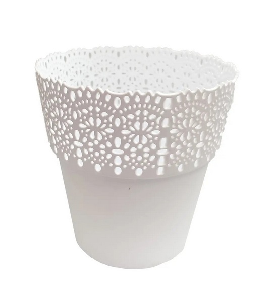 Отличительная черта цветочного горшка BELLA (Белла) – это верхний край с симметричной перфорацией. Внешне напоминает кружево, плетеное крючком, выглядит очень стильно и романтично. Такой ажурный верх выгодно подчеркивает красоту и хрупкость орхидеи.