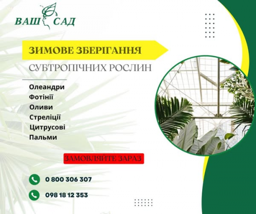 Фірма ВАШ САД надає послуги по перезимівлі КРУПНОМІРНИХ кімнатних рослин  у власних теплицях та догляд за ними в цей період.