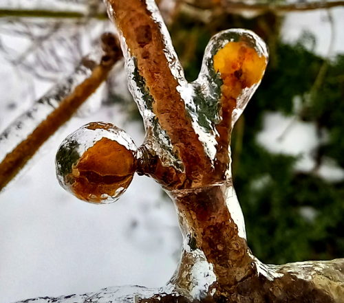 Рослини дачного саду в крижаному "полоні".