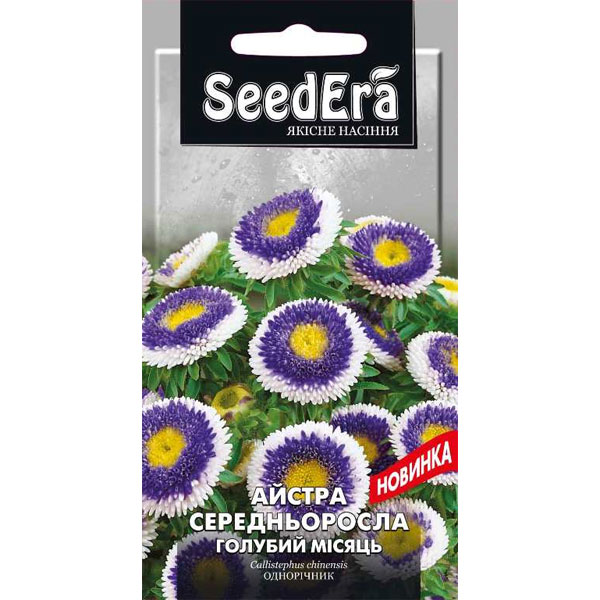 Тип - Помпонна. Ця айстра з махровими квітками оригінального фарбування по праву стане вишуканою окрасою Вашого саду. Утворює кущ заввишки до 50см. Стебла міцні, прямі. Суцвіття напівсферичні, густомахрові, синього кольору з інтенсивним переходом у білий колір на язичкових квітках, невеликих розмірів (до 5см у діаметрі). Цвіте у липні – вересні. Відрізняється рясністю та тривалістю цвітіння. Підходить для посадки у високому бордюрі, на змішаній клумбі або групових посадках на газоні.