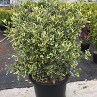 Бересклет японський - вічнозелений чагарник із шкірястим темно-зеленим листям, вузько-еліптичної форми з дрібнозубчастим краєм, 3-8 см завдовжки. Квітки жовтувато-зелені до 1 см, зібрані в суцвіття парасольок по 10-30 шт. Плоди - рожеві та помаранчеві коробочки.