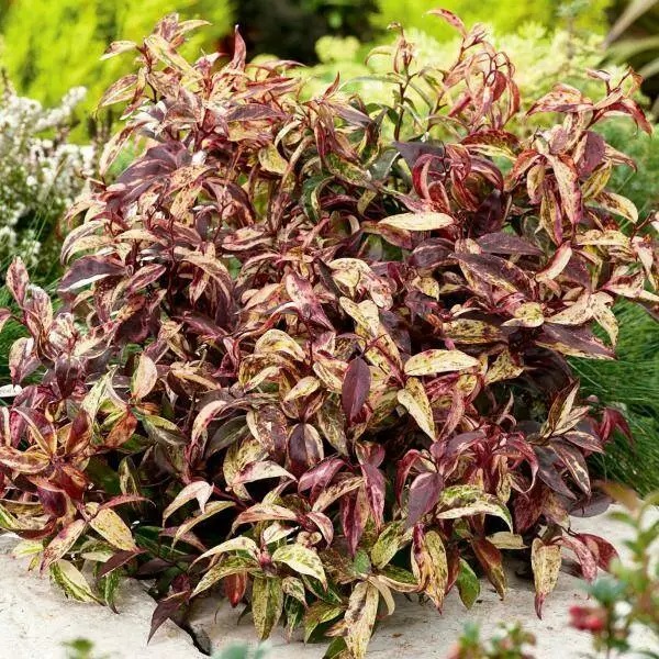 Північноамериканський вічнозелений чагарник з розпростертими, дугоподібно вигнутими червонуватими гілками, висотою 1,5 - 2 м, діаметром до 1,5 м. Листя ланцетове, голе, темно-зелене, блискуче, довжиною 8-15 см, шириною 2 5 см, при розпусканні червоні або бронзово-коричневі, потім з верхньої сторони залишаються темно-зеленими, знизу світлішими. Черешки червоні, 1 -1,5 см завдовжки. На яскравому сонці інтенсивно червоніють. Квітки білі, бутони червоні, запашні, в густих кистях довжиною близько 6 см. Цвіте у квітні - травні. Головний корінь сильний, численні додаткові коріння тонкі, поверхневі. Дає кореневі сини. Розташування: від сонячного до тінистого, краще росте при легкому затіненні. Погано переносить посуху та застій води. Посадка: рослини висаджують з відривом 0,8 -1,5 м. Глибина посадки 60 див, коренева шийка - лише на рівні грунту. Ґрунтову суміш готують із листової землі, торфу, піску (2:1:1) з додаванням хвойної підстилки (1/2 відра на яму), а також фосфоритного борошна (500 г). Обов'язковий дренаж з битої цегли та піску шаром 10 см. Розмноження: успішно розмножують живцями, насінням, кореневими нащадками. Використання: в одиночних посадках та групах. Вирощують і у контейнерах.