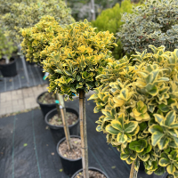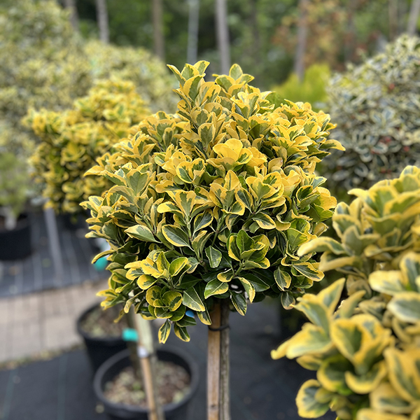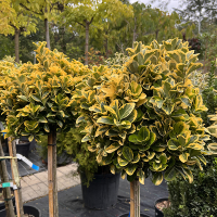 Euonymus japonicus Elegantissimus Aureus - вічнозелений кущ з темно-зеленим листям, яке має яскраві золотисто-жовті краї. Він декоративний цілий рік і добре росте на сонячних або напівтінистих ділянках із добре дренованим ґрунтом.