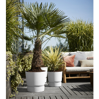 Квіткові горщики виготовлені з переробленого пластику, виготовлені з використанням енергії вітру від власного вітряка, а також повністю придатні для вторинної переробки.
