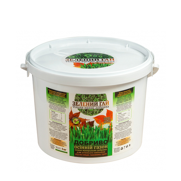 Осіннє добриво для газону Зелений гай має спеціальний склад, який сприяє зміцненню кореневої системи та готує його до зимового періоду. Це три основні поживні елементи: азот (N), фосфор (P) та калій (K).