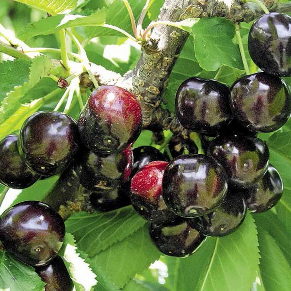 Плоди великі, одномірні, середньою масою 8 -10 г, округло-овальної форми, темно-червоного забарвлення, майже чорні. Шкірка тонка, щільна, темна-червона, а за повної зрілості плодів майже чорна, блискуча, від м'якоті добре відокремлюється. М'якуш темно-червоний, щільний, хрящуватий, соковитий. Сік темно-червоний. Кісточка дрібна, округла, вільна. Смак солодкий із приємною кислотою. Відрізняється транспортабельністю та універсальністю використання. Висока врожайність близько 100 кг з дерева.