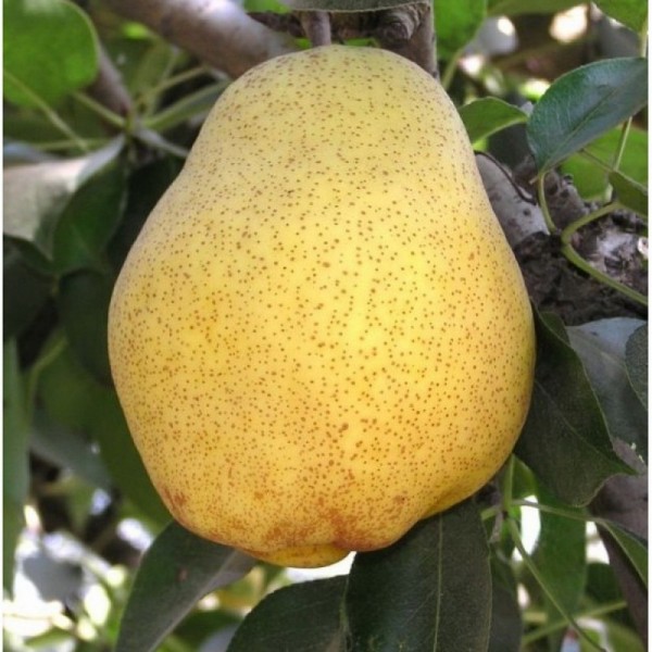 Груші бочкоподібної форми, середнього розміру, вага коливається від 120 до 200 г. Шкірка горбиста, шорстка, яскраво-жовтого кольору. У тих, що ростуть на сонячній стороні, з'являється яскравий рум'янець. М'якуш білого кольору, соковитий, щільний і ароматний. Смак приємний, солодкий із легкою кислинкою.