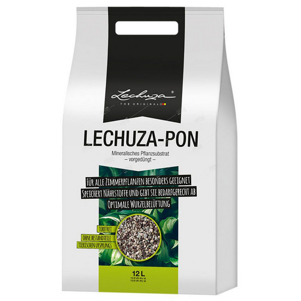 Субстрат LECHUZA-PON – це мінеральний неорганічний субстрат у Німеччині. Субстрат LECHUZA-PON знижує вразливість рослин до хвороб, підтримує рівень pH для оптимального росту рослин, накопичує надлишки вологи та поживні речовини, поступово віддає їх рослині, поглинає шкідливі речовини, блокує розвиток грибкових суперечок, забезпечує легкий доступ до вологої зони. Характеристики Область застосування: універсальне застосування всередині будинку та зовні. Підходить для вирощування орхідей. Також може використовуватися як дренажний шар для кімнатних рослин, що ростуть у грунті. Склад грунту/субстрату: LECHUZA-PON складається з очищеної пемзи, цеоліту, вулканічної породи та добрив. У субстраті використовуються азотно-фосфорно-калійні добрива терміном дії 6-12 місяців.