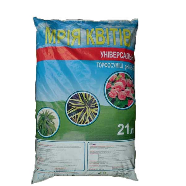 Торфосуміш - відмінний засіб для покращення ґрунту, формування структури та підвищення його родючості. Внесені в грунт торфосуміші поступово віддають поживні речовини, що містяться в ній, роблячи їх доступними рослинам і мікроорганізмам. У той же час, маючи високу поглинальну здатність, торфосуміші запобігають вимиванню елементів живлення рослин атмосферними опадами. Потрапивши в ґрунт, вони починають працювати негайно і здатні привести ґрунт у ідеальний стан. Об'єм: 21 л.