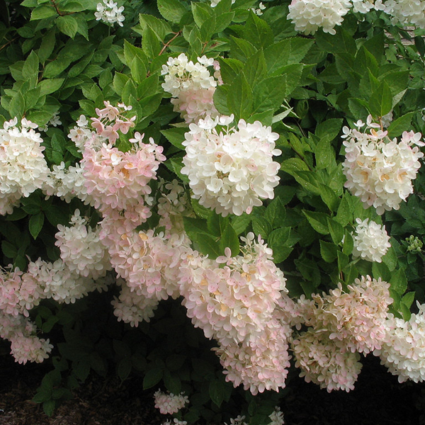 Гортензія мітловидна Грандіфлора – старовинний сорт, що прийшов зі Східної Азії і досяг популярності у 1860 році. У природній природі ця красуня може досягати близько 10 м. В умовах нашого клімату Гріндіфлора досягає всього лише 2м і цінується садівниками за невибагливість у вирощуванні та морозостійкість. Форма: Великий, густий, кущ із округлою кроною, можна формувати як невелике дерево. Доросла рослина має висоту 2,5-3м і стільки ж у діаметрі. Листя: Темно зелені, довгасті із загостреним кінчиком, дрібно зазубрені по краях. Квітки: Зібрані у великі, пишні, широко конусоподібні суцвіття- волоті довжиною близько 30 см, що змінюють своє забарвлення від вершково-білого до сніжно-білого. Наприкінці літа рожевіють. Тішить своїм рясним цвітінням з липня по вересень. Місцерозташування та ґрунт: Краще розвивається в півтіні. Віддає перевагу вологому грунту і захищеним від вітру місцям. Рекомендації щодо посадки: Гортензія висаджується в сонячних місцях ділянках. Глибина посадкової лунки 30 сантиметрів, діаметр витримується такою самою. Найкраще чагарник почувається на родючому ґрунті середньої кислотності. Під час посадки важливо обладнати яму гарною дренажною системою. Догляд: За гортензією не потрібно особливо ретельно доглядати. Мінеральні добрива вносяться щомісяця. Зверніть увагу, що їхня кількість має бути помірною, тому що гілки чагарник досить тонкі і якщо сформуються занадто великі квіти, то вони просто зламають пагони своєю вагою. Полив у міру висихання земляної грудки. Обрізка проводиться пізньої осені. Особливості: Це не тільки дуже красива декоративна рослина, а й лікувальна. Настоянки гортензії використовуються для боротьби з різними захворюваннями. Використання в дизайні: Ландшафтні дизайнери рекомендують використовувати гортензію у групових зелених насадженнях. З акуратних чагарників також формують низькі живоплоти. Ними прикрашають алеї.