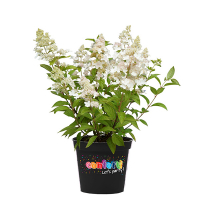 Гортензія хуртовина Confetti - компактний сорт. Суцвіття складаються з їх стерильних та фертильних квіток. Стерильні квітки спочатку кремово-білі, через 2 тижні забарвлюються в ніжно-рожевий колір, починаючи з нижньої частини суцвіття до вершини. Кожна квітка має різний відтінок рожевого. Цвітіння у липні-жовтні. Листя темно-зелене з глибокими прожилками. Кущ компактний, густий, висотою 120 см та шириною 75 см. Пагони сильні. Ідеально підходить для невеликих контейнерів на балконах та терасах. Місце сонячне або напівтінисте. Грунт вологий, дренований. Зона 4 (до -29 ? С). Висота рослини: 40 см