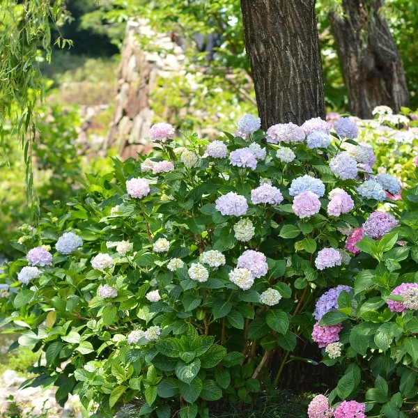 Кущ Гортензії прикрасить будь-яку садову ділянку. Це багаторічна рослина з красивими квітами. Чим старшим стає Гортензія, тим красивіше розростається її крона, формуючи правильну округлу форму. Форма: Округла, симетрична. Навіть за відсутності фігурної обрізки, чагарник формується в акуратну зелену кулю. Листя: Еліптична, щільна. Листя яскравого зеленого кольору зі світло-салатовими прожилками. Розташовані на пагонах спіралеподібним чином. Корнева система: Розвинена, не глибока. Коріння в основному розтягується близько до поверхні землі. Це варто враховувати при розпушуванні ґрунту. Рекомендації щодо посадки: Гортензія висаджується в сонячних місцях ділянках. Глибина посадкової лунки 30 сантиметрів, діаметр витримується такою самою. Найкраще чагарник почувається на родючому ґрунті середньої кислотності. Під час посадки важливо обладнати яму гарною дренажною системою. Догляд: За гортензією не потрібно особливо ретельно доглядати. Мінеральні добрива вносяться щомісяця. Зверніть увагу, що їхня кількість має бути помірною, тому що гілки чагарник досить тонкі і якщо сформуються занадто великі квіти, то вони просто зламають пагони своєю вагою. Полив у міру висихання земляної грудки. Обрізка проводиться пізньої осені. Особливості: Це не тільки дуже красива декоративна рослина, а й лікувальна. Настоянки гортензії використовуються для боротьби з різними захворюваннями. Використання в дизайні: Ландшафтні дизайнери рекомендують використовувати гортензію у групових зелених насадженнях. З акуратних чагарників також формують низькі живоплоти. Ними прикрашають алеї.